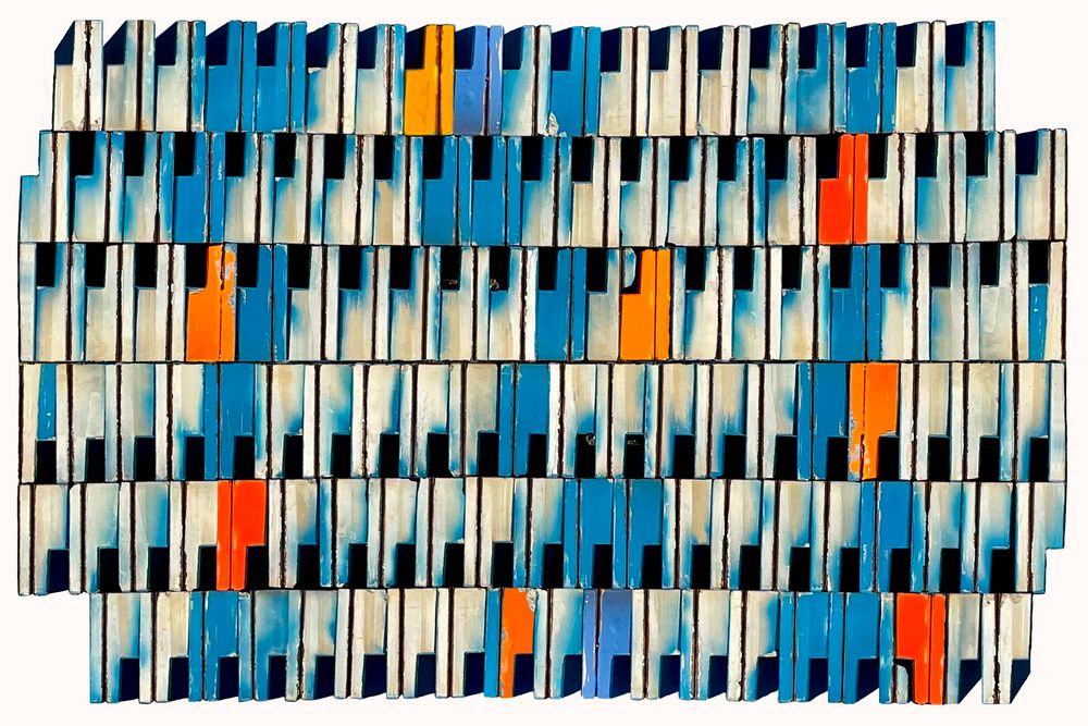 Blockade: a montage of cement blocks for road work. Red Hook, Brooklyn